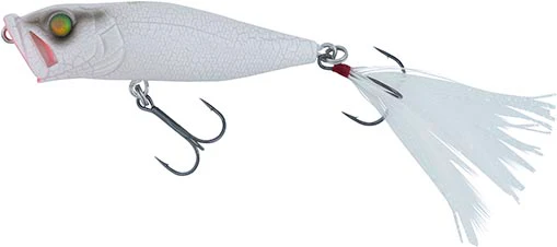 Of course, the POP-X can be worked like a regular popper, but unlike a conventional popper, which only splashes, the patented gill system of the POP-X has two slits that allow for water to pass through, creating a more organic surface disturbance. In addition, the mouth of the POP-X is designed to maximize the spitting distance that can be achieved with each twitch, resulting in considerable water displacement.